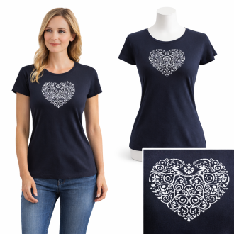 Women's T-shirt Embroidered Heart (Short Sleeve)