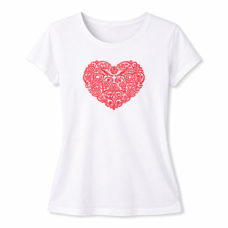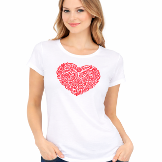 Dámske tričko s folklórnym srdcom – biele, krátky rukáv