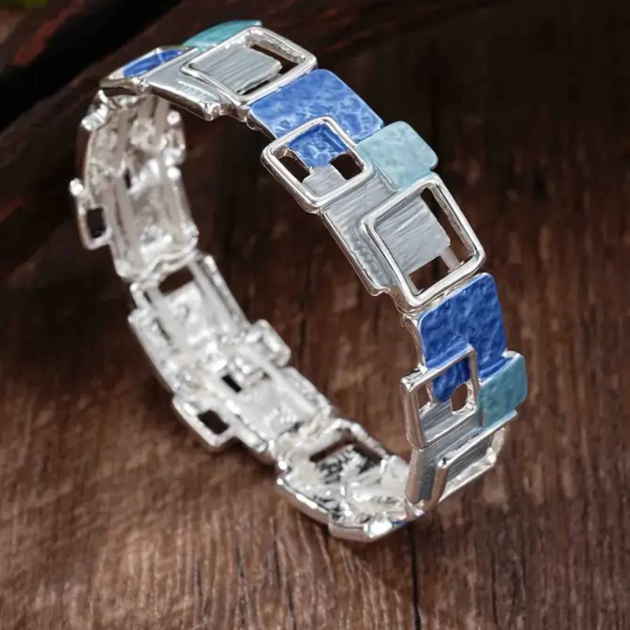 Vyniknite jedinečnosťou a štýlom s týmto luxusným náramkom. Ručne vyrobený kúsok. Nepravidelné tvary a umelecké detaily vytvárajú originálny dizajn, ktorý dodá vášmu outfitu nádych elegancie a individuality. Prispôsobiteľný elastický dizajn.