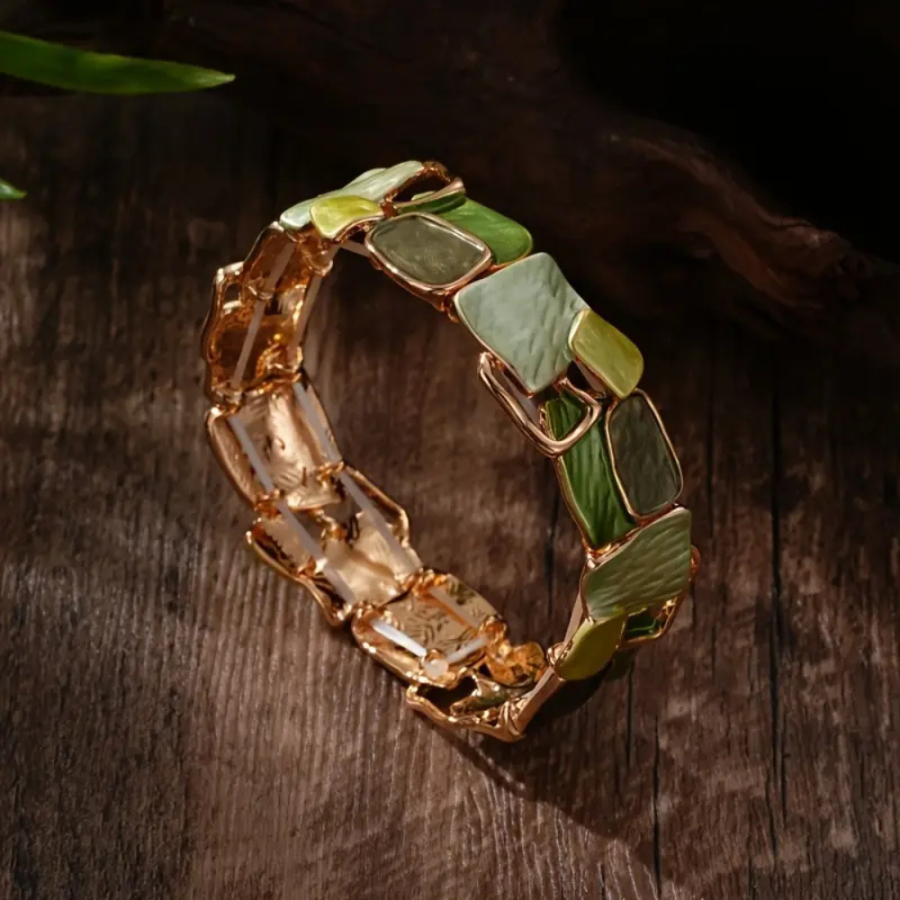 Vyniknite jedinečnosťou a štýlom s týmto luxusným náramkom. Ručne vyrobený kúsok. Nepravidelné tvary a umelecké detaily vytvárajú originálny dizajn, ktorý dodá vášmu outfitu nádych elegancie a individuality. Prispôsobiteľný elastický dizajn.