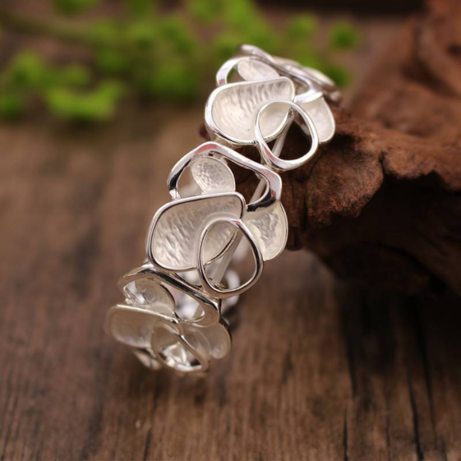 Vyniknite jedinečnosťou a štýlom s týmto luxusným náramkom. Ručne vyrobený kúsok. Nepravidelné tvary a umelecké detaily vytvárajú originálny dizajn, ktorý dodá vášmu outfitu nádych elegancie a individuality. Prispôsobiteľný elastický dizajn.