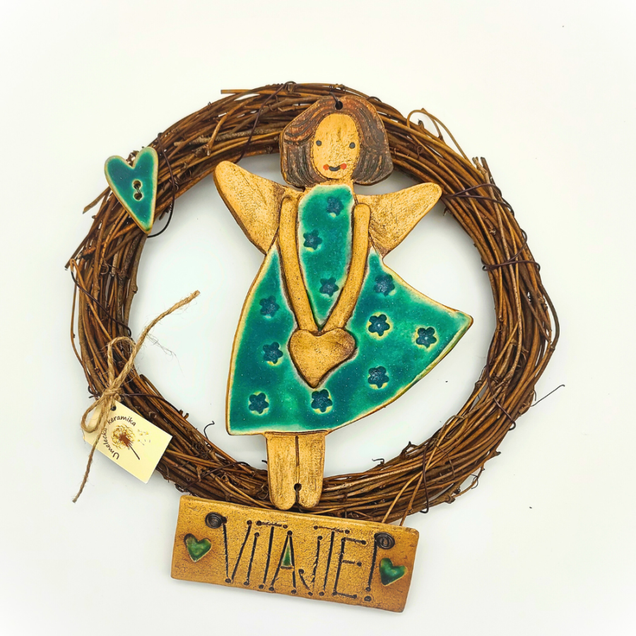 Závesný venček dvere s domčekom, kvietkom a tabuľkou Vitajte, sú z ručne modelovanej keramiky, patinovanej a glazovanej, 2 x pálenej, vtáčik je do venčeka pripevnený drôtikom. Venček na zavesenie kdekoľvek ...