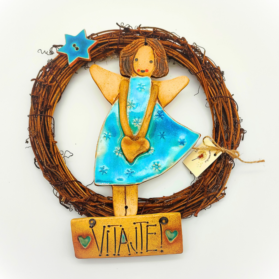 Závesný venček dvere s domčekom, kvietkom a tabuľkou Vitajte, sú z ručne modelovanej keramiky, patinovanej a glazovanej, 2 x pálenej, vtáčik je do venčeka pripevnený drôtikom. Venček na zavesenie kdekoľvek ...